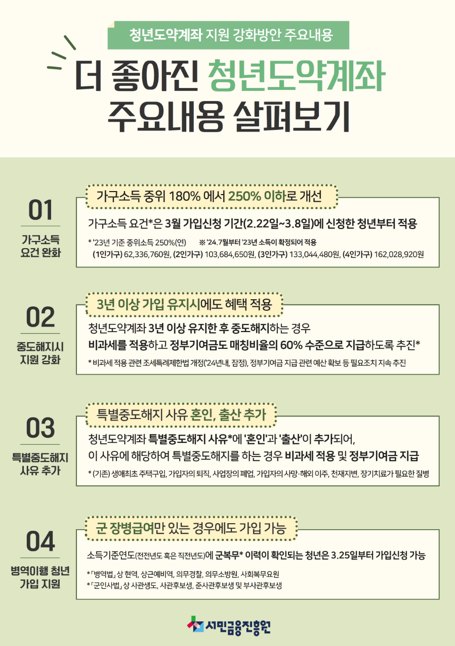 청년 여러분, 미래를 위한 재정적 안정을 위해 청년도약계좌나 청년희망적금을 잘 활용해보세요. 이러한 금융상품은 여러분의 재정 건전성을 강화하고, 더 나은 미래를 위해 저축 습관을 기르는 데 큰 도움이 될 것입니다. 각 상품의 장점을 잘 이해하고 활용하여, 여러분의 꿈과 목표를 달성하는 데 중요한 발판으로 삼길 바랍니다. 감사함미다.